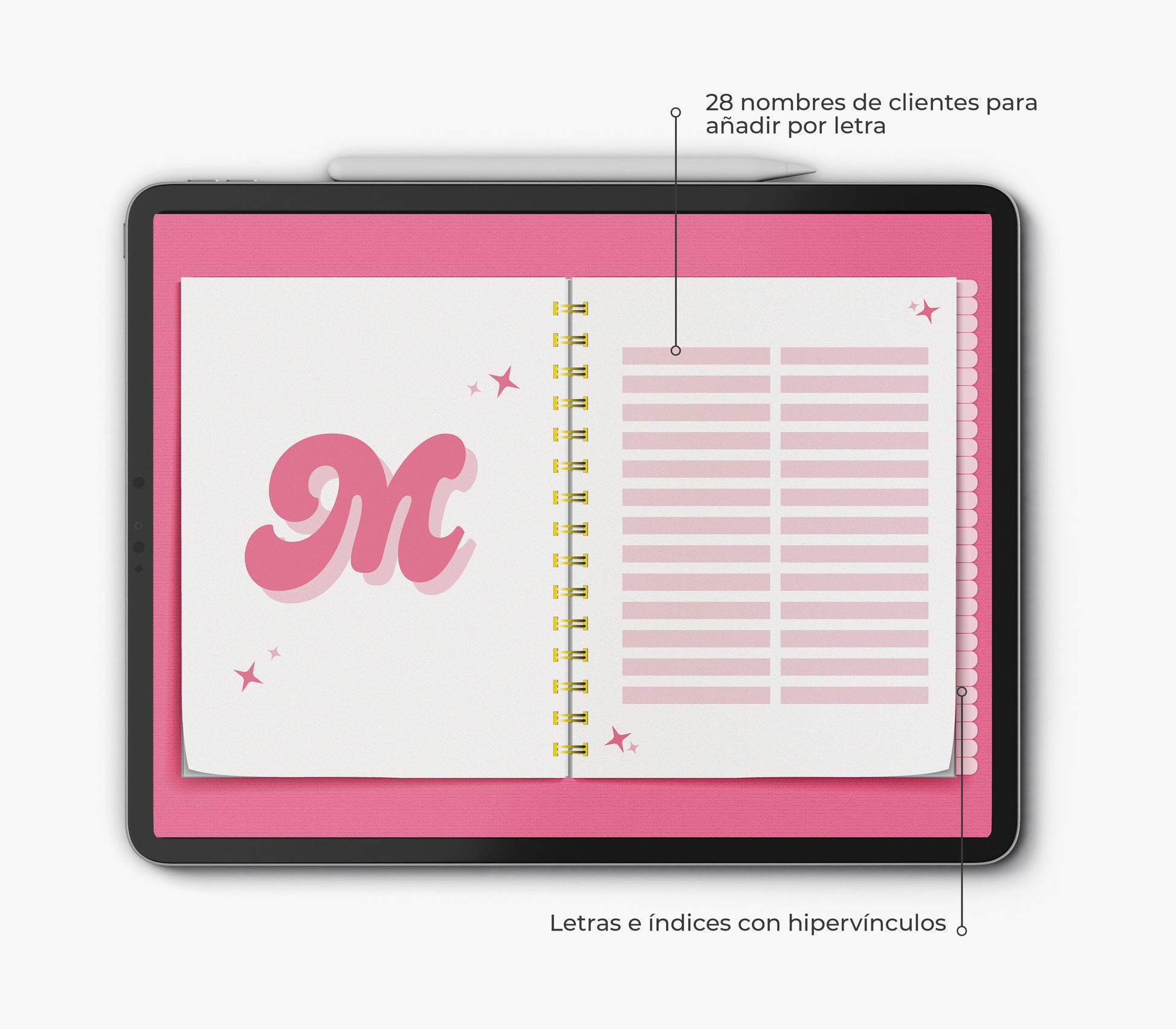 Libro de Registro del Cliente Digital Fucsia - Plantilla Hecha para GoodNotes