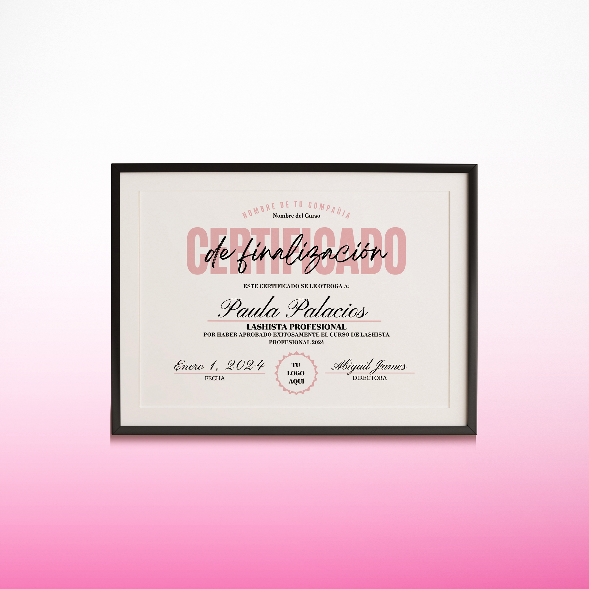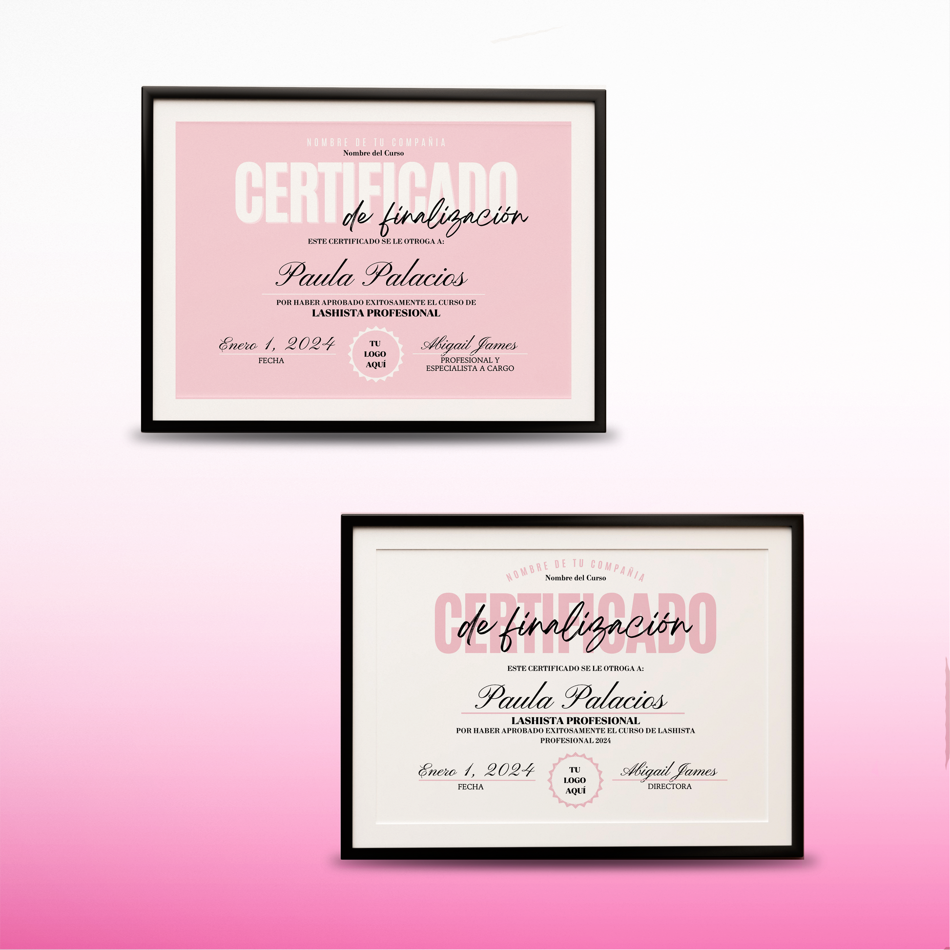 - 2 PLANTILLAS DE CERTIFICADO DE FINALIZACIÓN TAMAÑO 29.7 X 21 CM